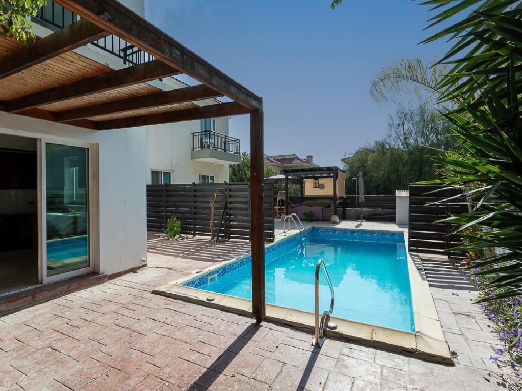 The house with door no.2 was constructed in 2003 and it is part of the complex "Opal Villas". The ground floor consists of a living/dining area and kitchen as an open space, guest toilet, covered and uncovered verandas. The first floor consists of three bedrooms (the one is ensuite with bathroom), common bathroom and uncovered veranda. Furthermore, it has common swimming pool and a yard.